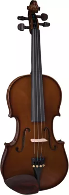 The Anton Eminescu 24F-1 Elite Stradivari violin features an advanced Stradivarius pattern as well as an even-grained Carpathian spruce top for excellent tone. The back, ribs, neck and scroll are crafted from hand-selected Carpathian maple. The Eminescu 24F-1 Elite is graduated for tone and presence, with hand-applied oil varnish and and an all-ebony trim. Every 24-1 Elite model comes with D’Addario Zyex Synthetic core strings standard.