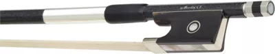 Teacher-endorsed and recommended for their high-quality manufacturing, the Arcolla Carbon Fiber Violin Bow provides a reliable and consistent performance. The shaft is expertly crafted and handsomely finished to a matte graphite fleck color. The button is 3-part with mother-of-pearl inlay. It has a premium ebony frog that fits tightly into the shaft. The winding is sterling silver with premium thumb leather, and it also features premium-grade horsehair.
