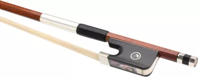 This three-star carbon fiber bow combines the look of a fine wood bow, but with the stable characteristics of a carbon fiber stick. The fine wood veneer finish allows for a more traditional look, without the sacrifice of precious wood resources. Featuring a fully lined nickel mounting, ebony frog with Parisian eye, plus a silver and leather grip.