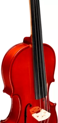 The Bellafina Prelude 2 series violin outfit features a quality instrument, a Brazilwood bow and a deluxe shaped foam case. The violin itself features a solid spruce top, solid maple back and sides and a solid maple neck with a beautiful oiled finish. The fingerboard and fittings are ebonized hard wood. Plus, it has a composite tailpiece with four fine-tuners and a Stradivarius-style chin rest. The aged maple bridge gives it an ideal extra touch. The Bellafina Prelude 2 series violin has a traditional red finish and ships with D’Addario Prelude strings.