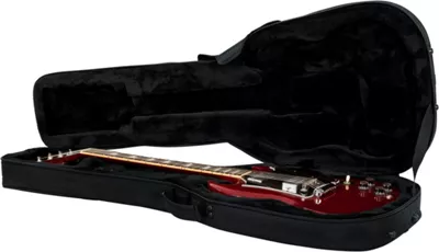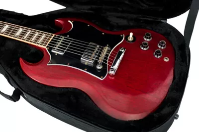 Low weight and flexibility combined with protective foam make The Gator GLSGS Guitar Case is the perfect combination of a hard case and a gig bag to keep your solid-slab double cutaway guitar safe. Durable nylon covering over dense EPS foam with support for the neck to keep your guitar safe. The plush interior avoids scratches. Two accessory pockets outside this case keep your guitar accessories handy. Nylon web handle, and a removable carrying strap make this Gator case convenient for you.