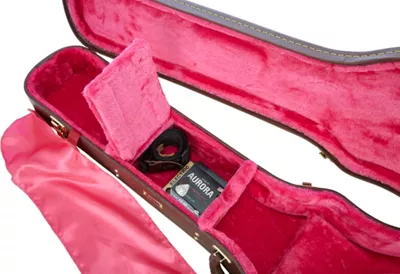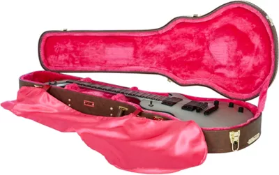 The interior of the Gator GW-LPS Guitar Case features a plush magenta lining and a fabric cover for ultimate style and protection of your single-cutaway instrument. 5-ply wood shell with a traditional brown exterior. Gator finishes off the classic look with gold-plated hardware and a deluxe padded handle.
