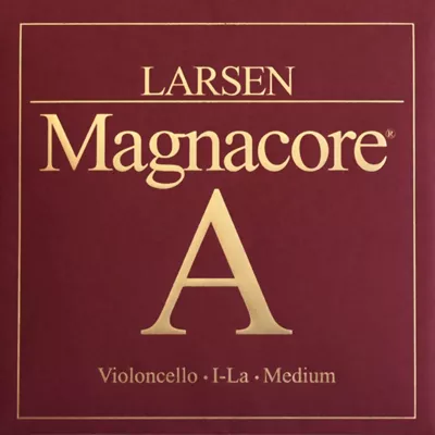 Larsen Magnacore cello A strings offer a well-balanced tone for experienced players, delivering full, rounded sound in all registers, allowing consistent clarity during fast passages, and maintaining solid richness during lyrical sections. Magnacore cello A strings are made with a solid steel core wound with steel, and a ball end. They are available in 4/4 size and come in multiple tensions.