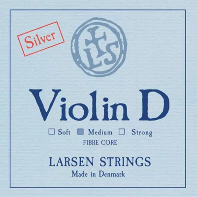Larsen Original violin D strings bring brightness and warmth to your instrument. Available in medium or heavy tension, they deliver an inviting, unhesitating feel, along with tuning stability and consistent sound. Reliable and capable of strong projection, Larsen Original violin D strings are ideal for any advancing player. They have a multi-filament nylon core wound with silver or aluminum, and a ball end.