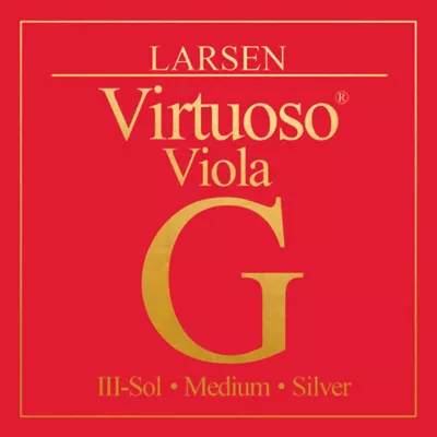 Larsen Virtuoso viola G strings produce an open and clear tone with a balance of brilliance and warmth. They were developed as an extension of the success of the Larsen Original viola A strings. Available in medium tension with a ball end, Virtuoso viola G strings have a unique multi-filament core and are precision-wound with silver.