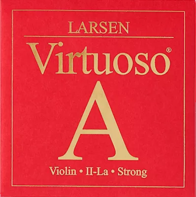 Larsen Virtuoso violin A strings have a moderate tension capable of rich, nuanced sound with exceptional volume. Available in medium or heavy tensions with a ball end, Virtuoso A strings are well suited for warm- to neutral- sounding instruments. The heavy tension allows for a focused, soloistic sound with higher bow resistance, while the medium tension offers great response, playability and sound modulation. Larsen Virtuoso violin A strings are made from a pioneering synthetic multi-filament core wound with aluminum.