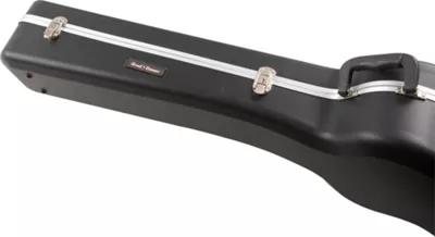This RRMBA17 ABS molded acoustic bass case from Road Runner is designed to fit most acoustic basses. The molded case has a non-scratch, thicker pile, plush-lined interior and padded neck brace with two accessory compartments—one covered and one open. To give extra protection to your special instrument, the exterior is a hardened, roadworthy shell. Other features include a tongue-and-groove valance, rubber feet, three riveted latches—the middle one has a lock & key mechanism—and an offset handle for easier transportation.