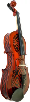 The Celtic Love Viola from Rozanna’s Violins takes its inspiration from the beautiful Celtic art throughout the ages, as well as the Celtic tradition of viola playing and aesthetics. With a dramatic and modern take on an age-old tradition, this viola inspires possibilities. Features include solid, hand-carved, graduated maple and spruce. Each instrument has been upgraded to include premium quality strings to bring out the best possible tone. A translucent warm brown finish lets the grain show through. Each violin outfit includes a classy viola case and brazilwood bow with ebony frog and genuine unbleached horsehair.