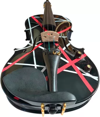 The Electro WRAP violin outfit from Rozanna’s Violins has a striking design with an intense, cutting edge look. The WRAP violin body originates in Romania and features metal machine head pegs, much like those used in basses, making these violins easy to tune while having an edgy modern feel. Built with a genuine maple back and sides, solid spruce top and ebony fittings, this violin comes with a carbon composite bow, sturdy shaped case, rosin and strings.