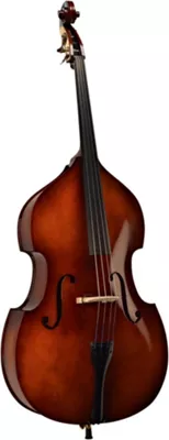 The Thumper Upright string bass outfit is a quality 3/4 size bass, perfect for bluegrass. It features a laminated spruce top, laminated maple back and sides, solid maple neck, ebony fingerboard and Helicore Orchestra strings. The nut and saddle are crafted of ebony, and it has an adjustable maple bridge. Inlaid purfling enhance the charm and beauty of the instrument, as does its shaded matte finish.