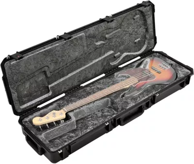 The SKB ATA Bass Case is the first Injection molded bass case. It accommodates “Precision” and “Jazz” style bass guitars and is the latest size in SKB’s 3i series of waterproof cases.