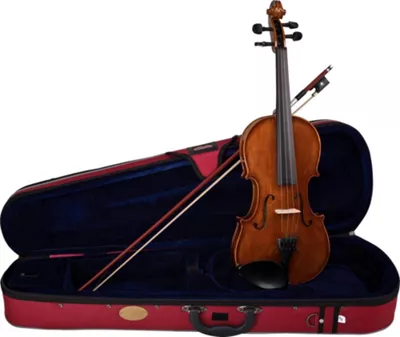Educators recommend the 1500 Stentor Student II series violin as an incredibly reliable teaching instrument. Made from hand-carved selected tonewoods, it also features the advantage of ebony pegs and fingerboard, and a good student wooden bow with an ebony frog and rope core strings. The outfit comes complete with a lightweight case with accessory pockets and carrying strap, and is available in sizes: 4/4, 3/4, 1/2, 1/4, 1/8.