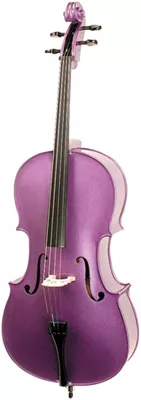 The colorful Harlequin Series Purple Cello from Stentor is carved from solid tonewoods and offers both quality and style. Harlequin colored cellos come in a padded cover with a bow pocket and a quality wood bow included. They are made to correct measurements and specifications with good quality fittings.